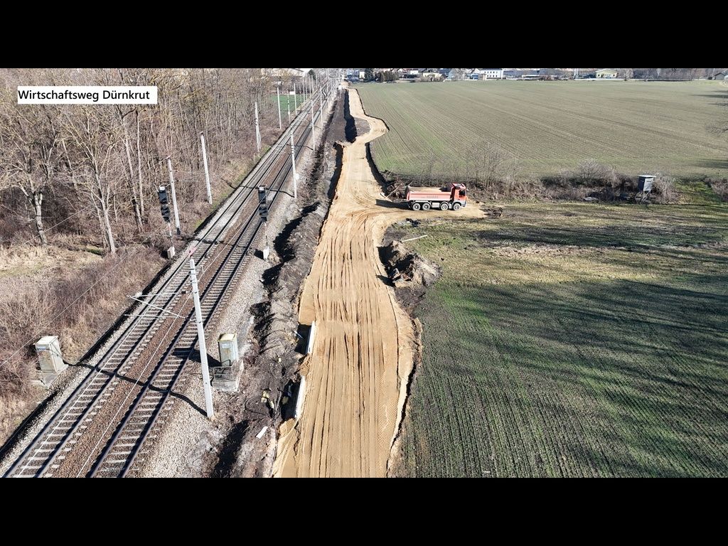 | Im Zuge des Ausbaus der Nordbahn haben die ersten Vormaßnahmen im nördlichen Streckenabschnitt zwischen Gänserndorf und Bernhardsthal begonnen. Die Bauarbeiten sind in mehrere Abschnitte unterteilt und erstrecken sich über eine Distanz von rund 15,5 Kilometern, vom südlichsten Punkt in Tallesbrunn bis zum nördlichsten Bereich in Dürnkrut. In Tallesbrunn wird die bestehende Eisenbahnkreuzung der L3027 aufgelassen und durch eine neue, moderne Überführung ersetzt. Dadurch wird die Verkehrssicherheit erhöht. Auch im Bereich Stillfried erfolgen umfangreiche Arbeiten: Die Senke „Grubergraben“ wird abgeflacht, um die zukünftige Befahrung zu vereinfachen. Zusätzlich wird die bestehende Europabrücke aufgrund ihrer eingeschränkten Tragfähigkeit (derzeit 16 Tonnen) durch eine neue Brücke ersetzt. In Dürnkrut entsteht entlang der Bahnstrecke ein neuer Wirtschaftsweg, dieser ist für die weiteren Baumaßnahmen entlang der Strecke notwendig. In diesem Zuge wird auch eine neue Brücke über den Sulzbach errichtet. Rund 65.000 m³ Dammkörper werden dabei geschüttet und etwa 25.000 m³ Material ausgehoben. |
