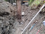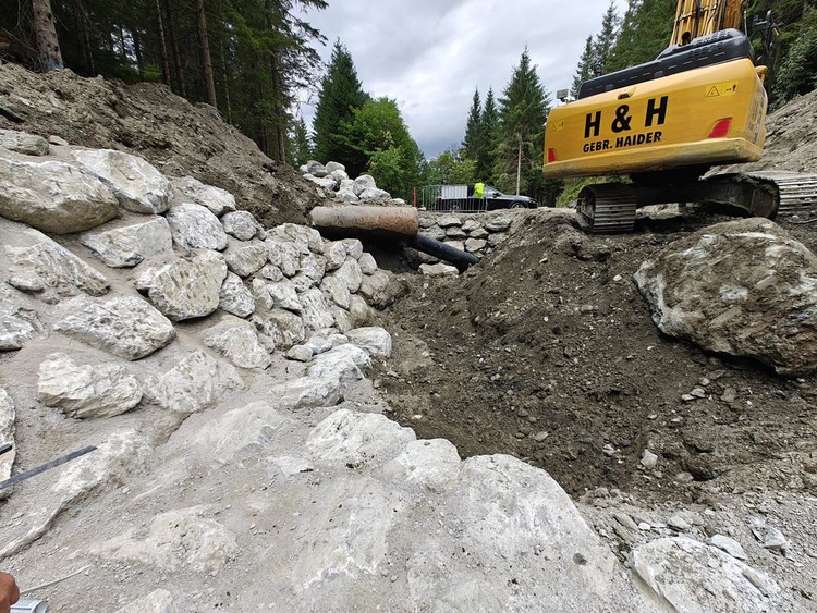 Errichtung der Druckrohrleitung über rund 1.570 lfm aus zug- und schubfesten Gussrohren DN300, bei Geländeneigungen bis zu 38°, inklusive Verlegung der Steuerkabel