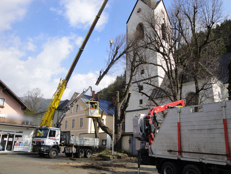 Weiters können auch diverse Zufahrtsstraßen in engen Gebieten ohne Probleme freigeschnitten werden und das Spektrum reicht bis zum Baumabtrag in kleinen Hinterhöfen.